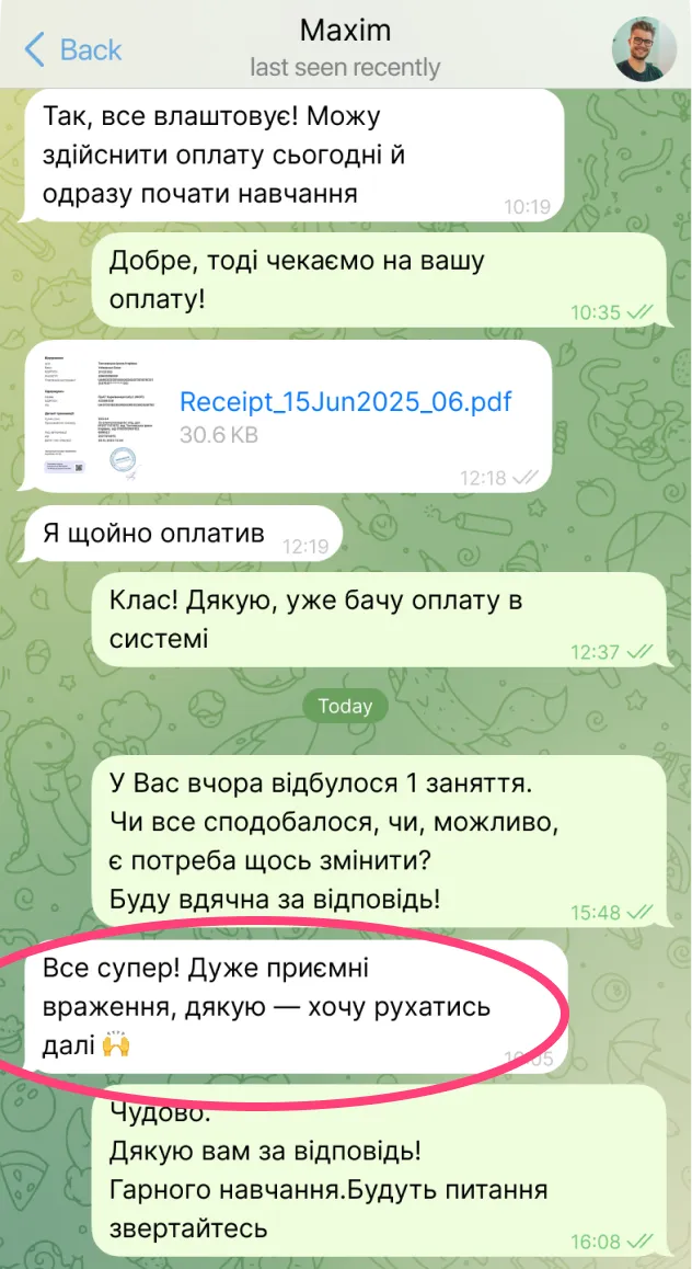 Це живі сесії з тренером, де ви одразу відпрацьовуєте відповіді та отримуєте персональний фідбек.ання.